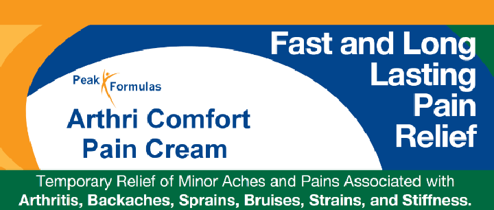 ARTHRI COMFORT CREAM is an OTC topical “hot-spot” companion formula for use with ARTHRI COMFORT capsules. A clinical study showed that 82% of subjects realized 60-90% pain relief within 5-10 minutes after application. Ninety-four percent (94%) of subjects had significant relief from arthritis, inflammation, and range of motion limitations. Significant relief from muscle pain and joint stiffness was realized by 100% of subjects. Pain relief from using this product was shown to last for up to 6-8 hours per application, making it one of the fastest and longest-lasting arthritis creams available.