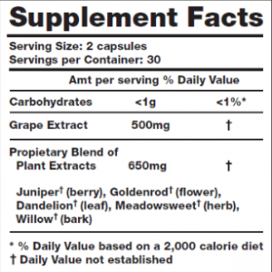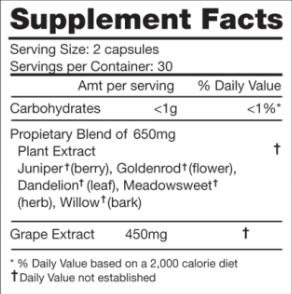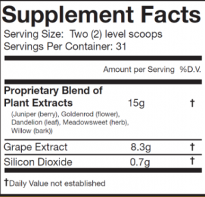 Salix Nigra (Willow) Bark Extract, Solidago Virgaurea (Goldenrod) Extract, Spiraea Ulmaria (Meadowsweet) Extract, Steareth-2, Steareth-10, Stearic Acid, Taraxacum Officinale (Dandelion) Extract, Vitis Vinifera (Grape) Seed Oil.
